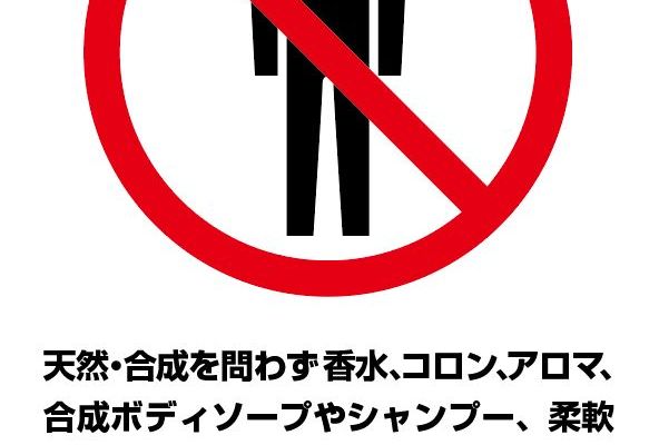 ・天然・合成を問わず香水、コロン、アロマ、合成ボディソープやシャンプー、柔軟仕上げ剤等、匂いのあるものを使用されている方の入室はお断りいたします。化学物質過敏症の方のための重要な配慮です。