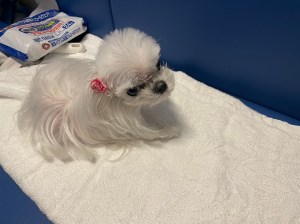 3代目「らら」は、高齢者施設に出かける前ブラッシングをしてトイレをすませ、